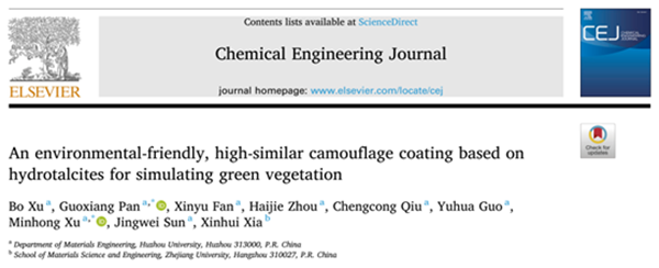 近日,我校工学院材料学科团队在军事伪装材料领域取得突破,研发了一种基于水滑石的环保型丛林伪装涂层,相关研究成果以“An environmental- friendly, high-similar camouflage coating based on hydrotalcites for simulating green vegetation”为标题发表在材料学知名期刊《Chemical Engineering Journal》(SCI一区TOP,IF=13.3)上,论文第一作者为我校电子信息专业2022级硕士生徐博,潘国祥教授、徐敏虹高级实验师为共同通讯作者。