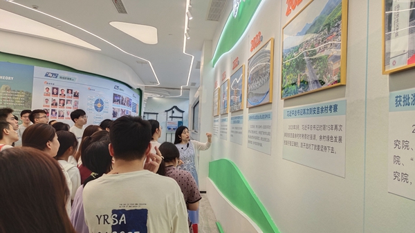 为深化青年学子对绿水青山就是金山银山理念(以下简称“两山”理念)的实践认知,将专业学习与生态文明教育深度融合,近日,生命科学学院2025级水产专业近40名研究生,在吴湘老师带领下走进践行“两山”理念展示馆,开展了一场“行走的思政课——水产养殖生态学”,让思政课堂在实地探索中焕发新活力。